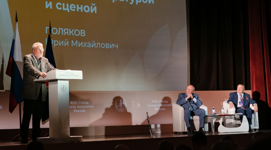 Заместитель 1-го секретаря СПР, писатель-драматург Юрий Поляков выступил с докладом на тему «Драматургия и театр: между литературой и сценой». Юрий Михайлович отдельно остановился на вопросе о необходимости возрождения театральной критики и более плотной работы драматургов и критиков с сайтом СПР: «Плодотворное развитие литературы невозможно без объективной, независимой, квалифицированной критики. А она сейчас — коммерческая обслуга крупных издательских концернов».