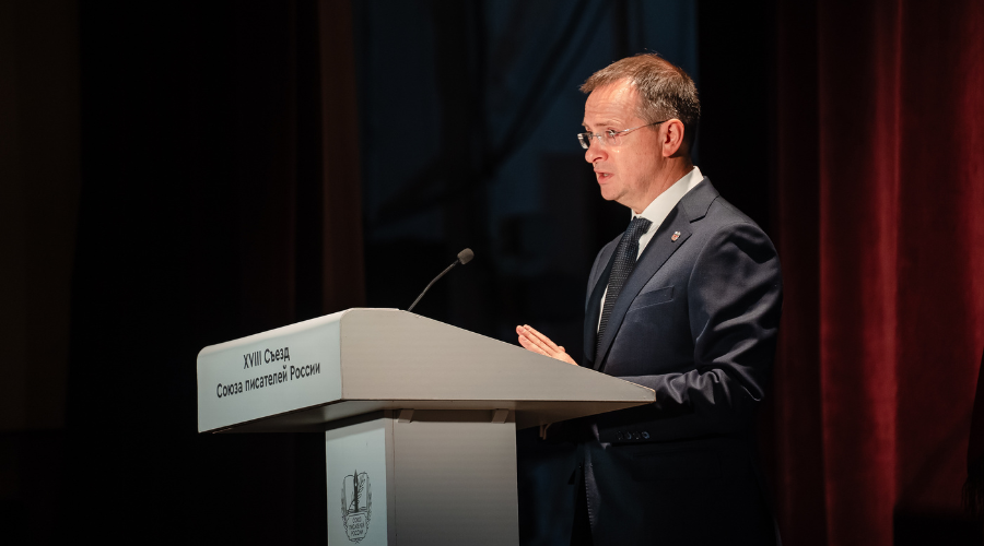 Владимир Мединский в своем выступлении поблагодарил литераторов за проделанную работу по обновлению Союза писателей России и отметил, что взятый в феврале 2025 года курс на консолидацию писательского сообщества страны, реализуется: