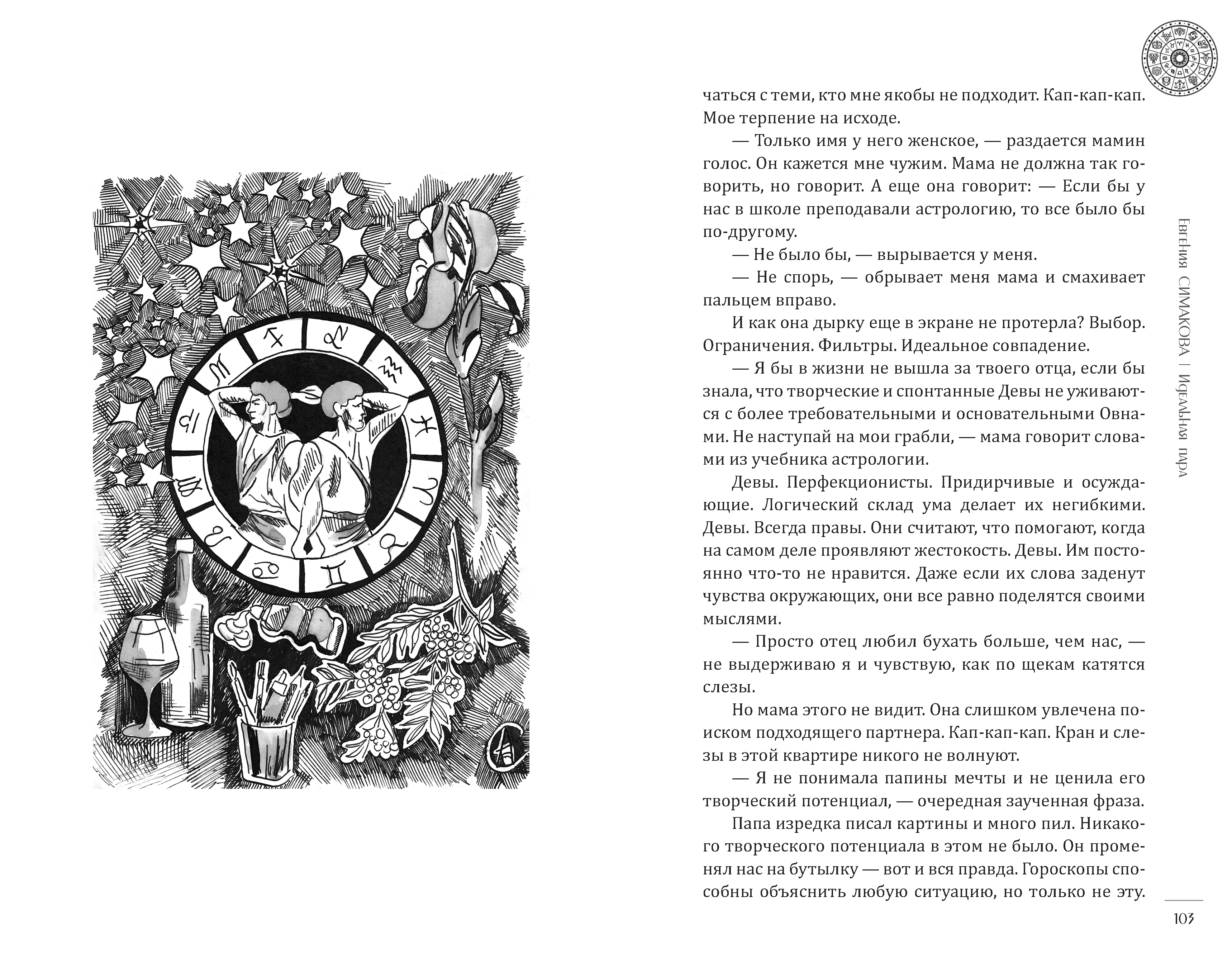 А зло вполне может быть завуалировано семейной, родственной заботой — так, как это происходит в рассказе Евгении Симаковой «Идеальная пара»: мать управляет судьбой дочери, манипулирует ею, за неё определяет её жизненный выбор; в грядущей цивилизации, что живописует автор, всё замешано на обращении людей к знакам Зодиака — здесь, в сюжете рассказа, Зодиак становится некой отправной точкой существования, ненарушаемым законом, Книгой Жизни, от буквы и устава которой нельзя отступить ни на шаг. По сути, автор обрисовывает новый Домострой, и невинный Зодиак здесь уже — жёсткая догма и непреложное руководство к действию. Звёздная инструкция. Звёздная решётка. А героиня жаждет свободы! Она слишком юная, чтобы подчиняться смиренно и безусловно! Её отец, художник, тоже не хотел жить в предопределённом мире. Он хотел свободы. И получал её — в алкоголе и в творчестве. А дочь, мечтавшая о том, что она будет в жизни делать всё сама и вдыхать воздух чистой радости, понимает: где-то есть мир без заданной звёздами судьбы. Мир никем и ничем тебе не предназначенный. Мир импровизации, воли, полёта: