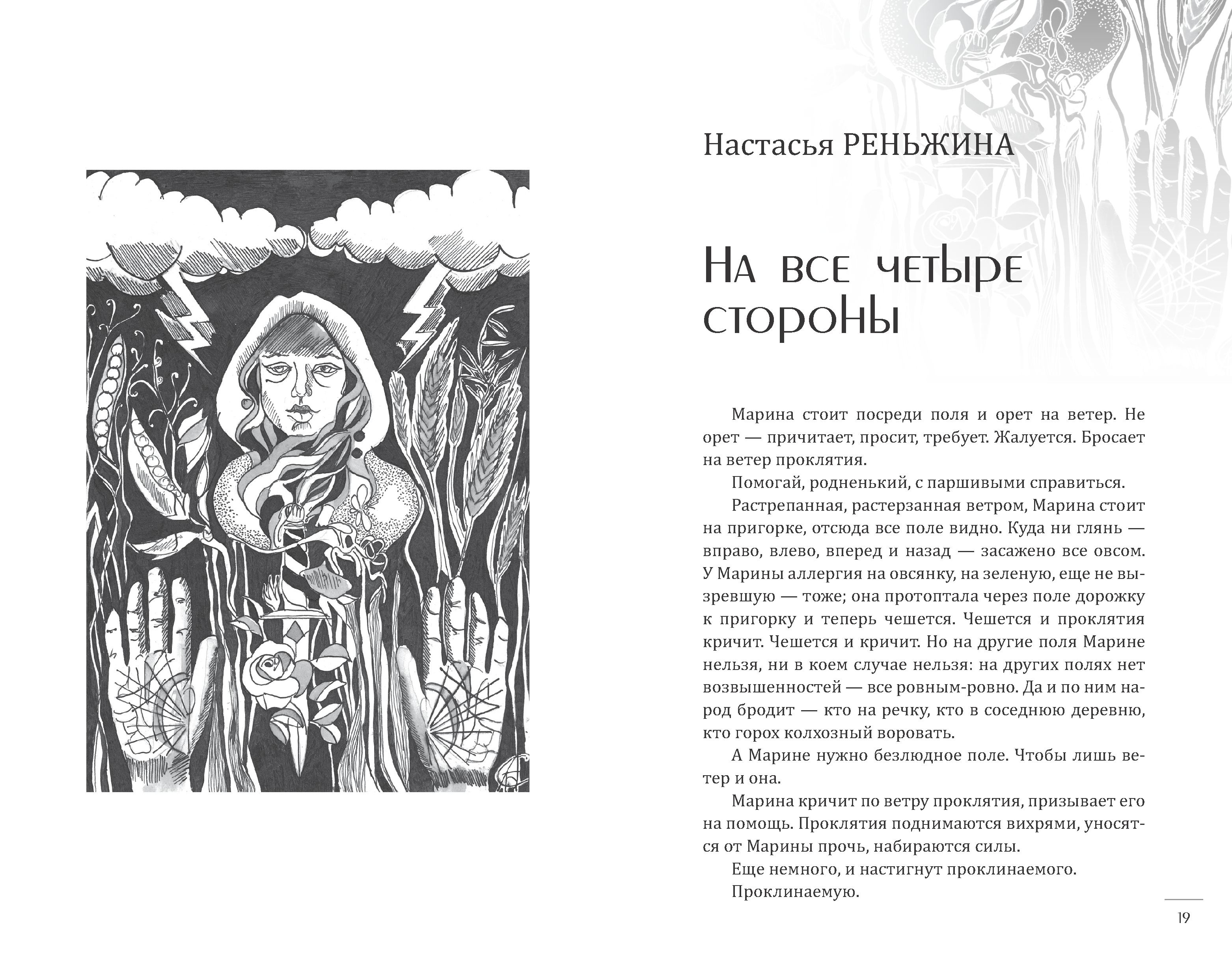 Однако мелодия Зодиака как судьбоносного звёздного гигантского круга, определяющего малые круги индивидуального бытия, в книге иной раз сбивается на мифологическую стихийность, на буйство забытого фольклора, где заговоры и проклятия, единение со стихиями — ветром (воздухом), землёй, водой, огнём — необходимое условие и личной мести, и попытки изменить жизнь, ставшую постоянной болью, и соприкосновения с царственной властью Матери-Природы, которая в неистовом танце-вихре этих четырёх стихий и проявляется; именно так работает Настасья Реньжина в рассказе «На все четыре стороны»: