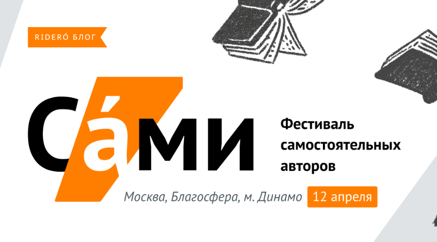 Издательский сервис Rideró приглашает всех, кто пишет, издается и ищет читателей принять участие в программе большого фестиваля для самостоятельных авторов «САМИ», который пройдет 12 апреля, в воскресенье, в московском центре «Благосфера» (м. Динамо, 1-й Боткинский проезд, д. 7, стр. 1).