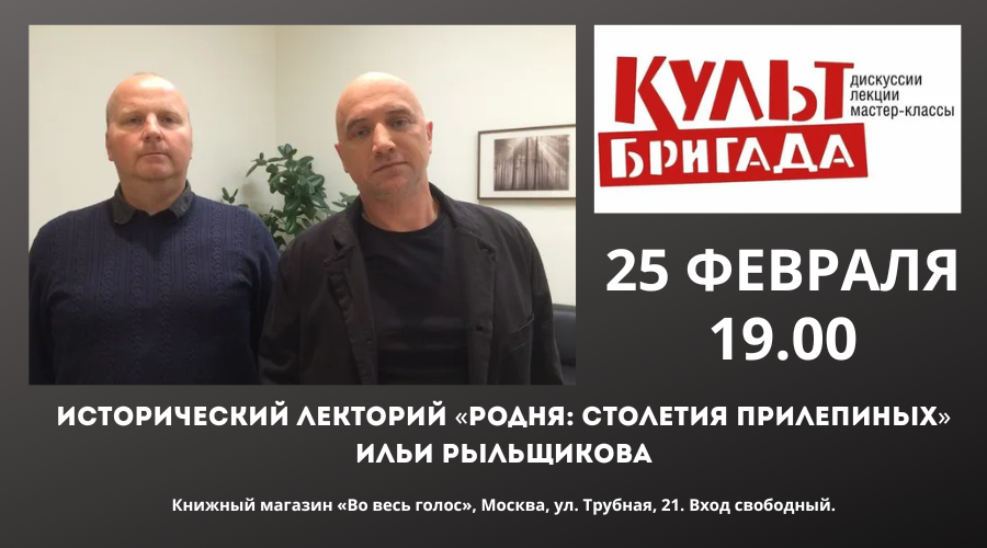 25 февраля в 19.00 в книжном магазине «Во весь голос» по адресу: Москва, ул. Трубная, 21 пройдет исторический лекторий «Родня: столетия Прилепиных» Ильи Рыльщикова.